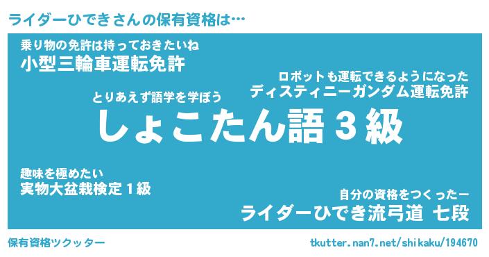 | 胡散臭い通販商品みたいなあだ名 | 『億万長者になれる水晶球…その名も「ライダーひでき」』 |