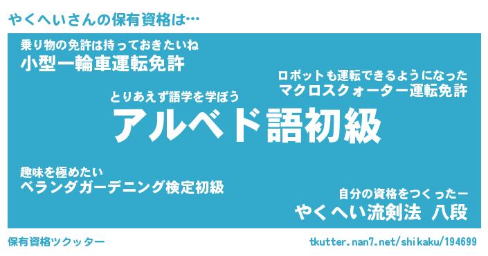 | 意味不明あだ名 | 『ペロリンやくへい』『永久保存やくへい』 |