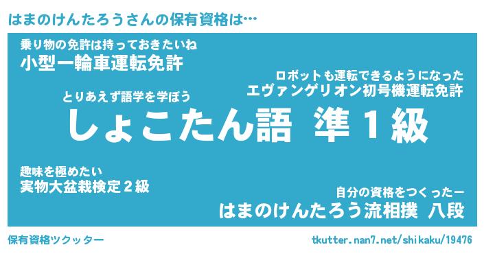 | 伝説のあだ名 | 『封印されし傭兵はまのけんたろう』 |