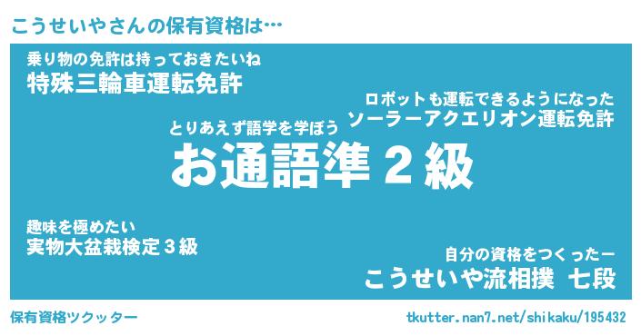 | 肩書あだ名 | 『こうせいや社長令嬢』『こうせいや塾長』 |