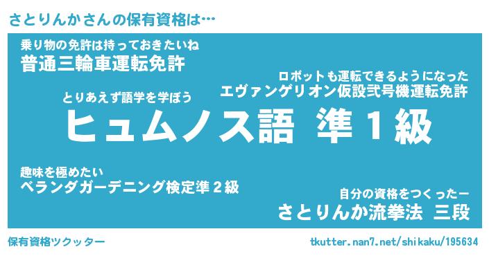 | ツイッター | さとりんかさんのツイッターID『namakemono_kun』 |