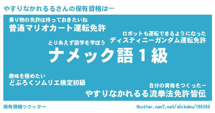 | 欧米人風あだ名 | 『マイケルやすりなかれるる』 |