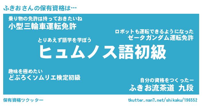 | 自動車の名前っぽいあだ名 | 『フキティマ』『フクア』『ヴィッフ』 |