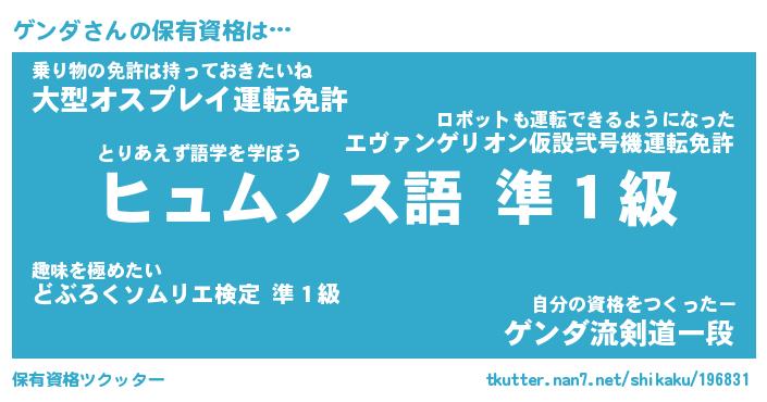 | ファンタジー風あだ名 | 『ゲンフェル』『エターナルゲンダー』 |