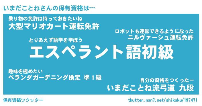 | ツイッター | いまだことねさんのツイッターID『konnyaku_nyan』 |