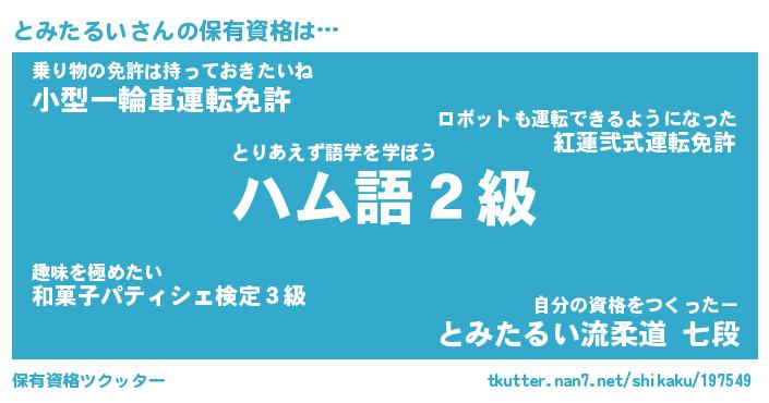 | ヒーロー風カッコイイあだ名 | 『スーパートミタルイ』『魔戒騎士トミ』 |