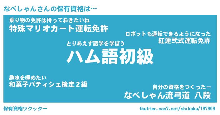 | ヒーロー風カッコイイあだ名 | 『スーパーナベシャン』『暗黒騎士ナベ』 |