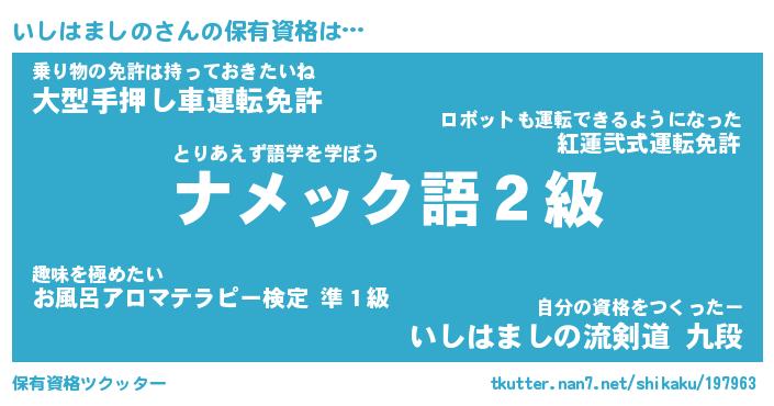| ヒーロー風カッコイイあだ名 | 『スーパーイシハマシノ』『魔戒騎士イシ』 |