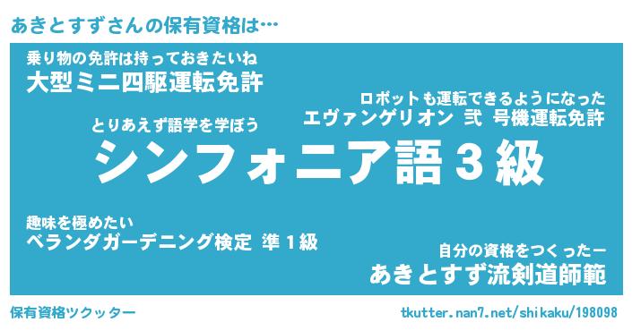 | ツイッター | あきとすずさんのツイッターID『kikurage_idle』 |