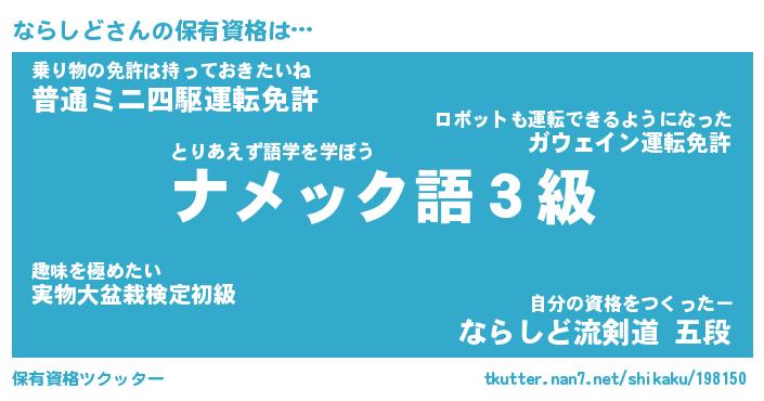 | ファンタジー風あだ名 | 『ナラフェル』『エターナルナラシドー』 |