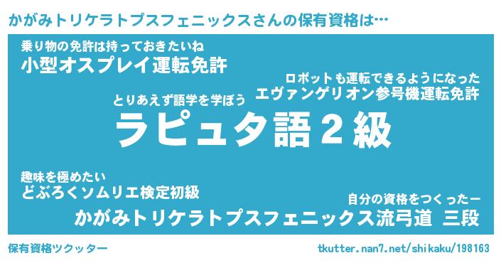 | 欧米人風あだ名 | 『マイケルかがみトリケラトプスフェニックス』 |