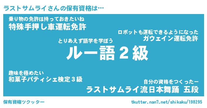 | 意味不明あだ名 | 『ペロリンラストサムライ』 |