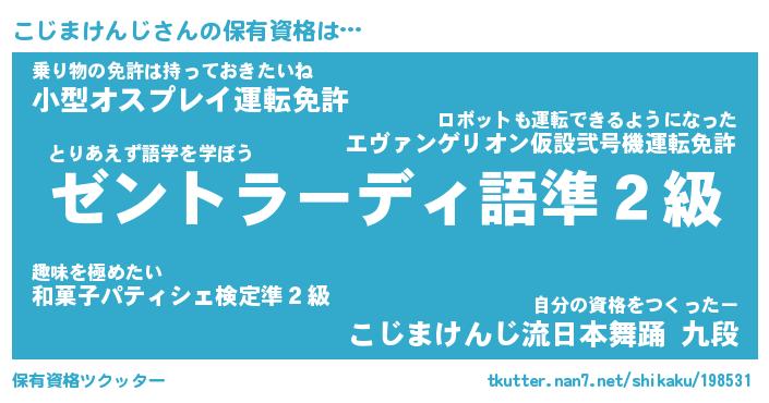 | ヒーロー風カッコイイあだ名 | 『スーパーコジマケンジ』『暗黒騎士コジ』 |