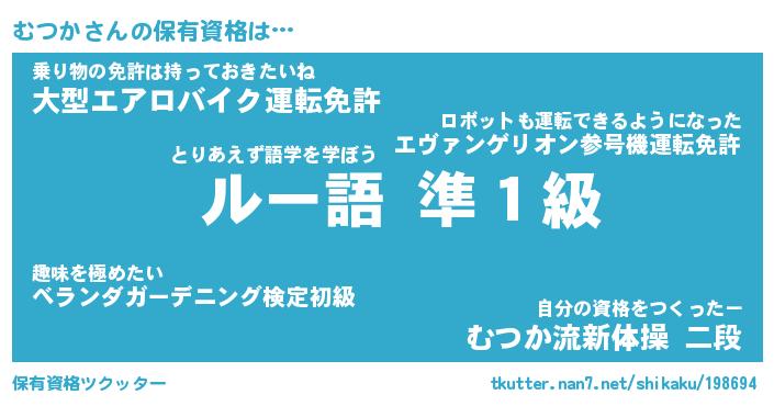 | ファンタジー風あだ名 | 『ムツフェル』『エターナルムツカー』 |