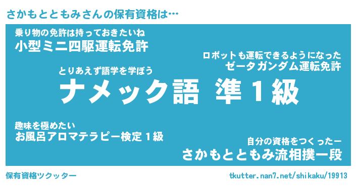 | 伝説のあだ名 | 『不死鳥の傭兵さかもとともみ』 |