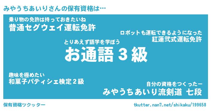 | 欧米人風あだ名 | 『マイケルみやうちあいり』 |