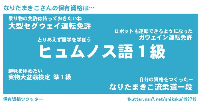 | ヒーロー風カッコイイあだ名 | 『スーパーナリタマキコ』『天弓騎士ナリ』 |