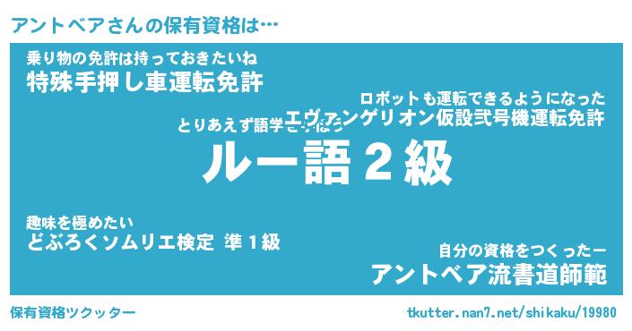 | ヒーロー風カッコイイあだ名 | 『スーパーアントベア』『天弓騎士アン』 |