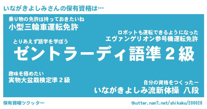 | ツイッター | いながきよしみさんのツイッターID『masyumaro_kun』 |