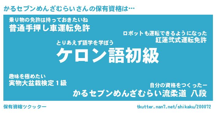 | 胡散臭い通販商品みたいなあだ名 | 『必ず成功する霊験あらたかなお札…その名も「かるセブンめんざむらい」』 |