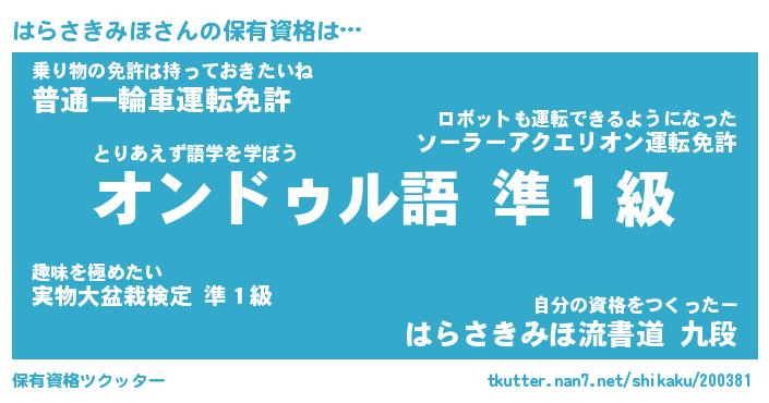 | 意味不明あだ名 | 『ペロリンはらさきみほ』 |