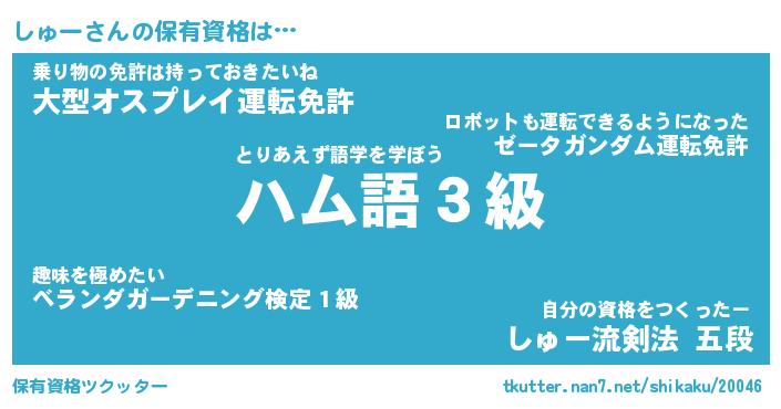 | ファンタジー風あだ名 | 『シュフェル』『エターナルシューー』 |