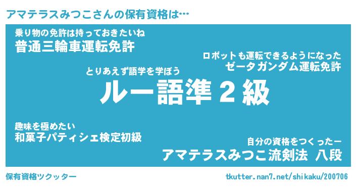| 意味不明あだ名 | 『ペロリンアマテラスみつこ』 |