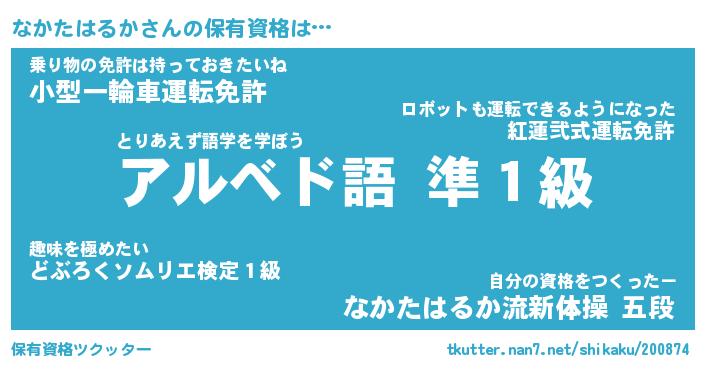 | ヒーロー風カッコイイあだ名 | 『スーパーナカタハルカ』『暗黒騎士ナカ』 |