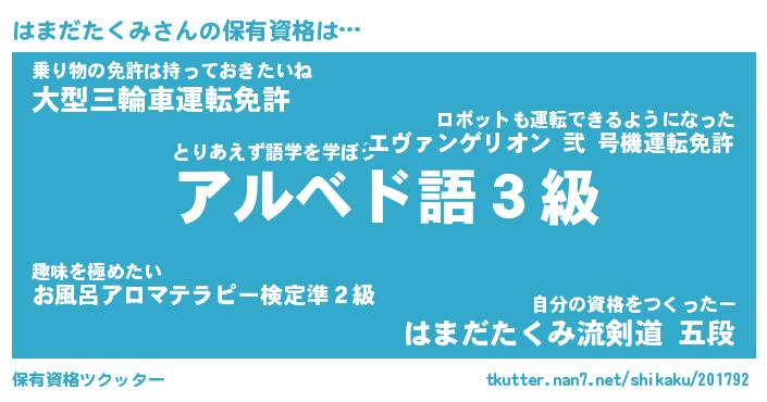 | 料理風あだ名 | 『節約★はまだたくみと油揚げの玉子丼』 |