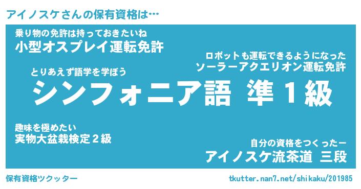 | 肩書あだ名 | 『アイノスケ店長』『アイノスケ大統領』 |