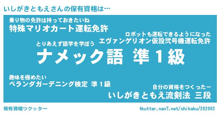 | 男性向けラノベタイトル風あだ名 | 『いしがきともえの憂鬱』 |