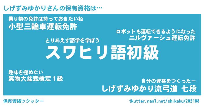 | 伝説のあだ名 | 『伝説のスナイパーしげずみゆかり』 |