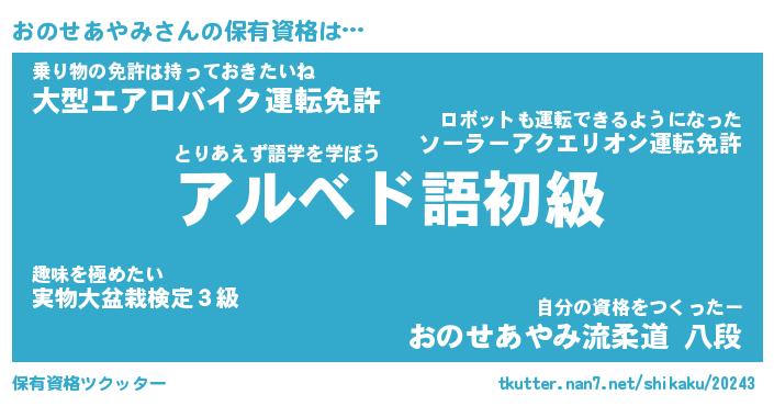 | 肩書あだ名 | 『おのせあやみ御曹司』 |