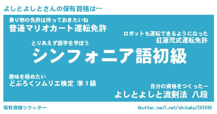 | ヒーロー風カッコイイあだ名 | 『スーパーヨシトヨシト』『天弓騎士ヨシ』 |