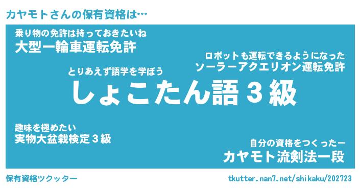 | ファンタジー風あだ名 | 『カヤフェル』『エターナルカヤモトー』 |