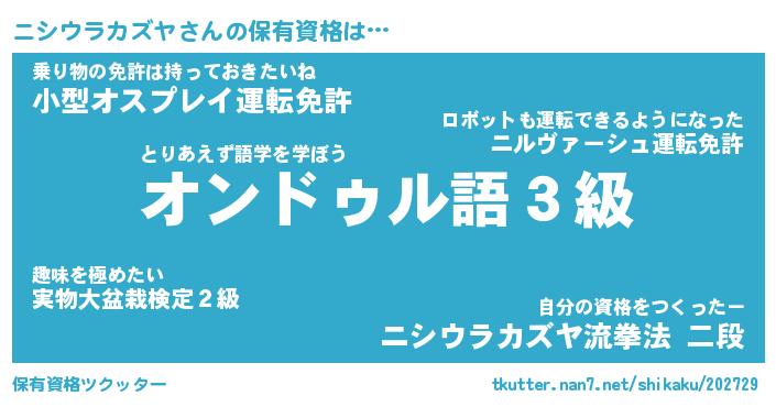 | 男性向けラノベタイトル風あだ名 | 『ニシウラカズヤアートオンライン』 |