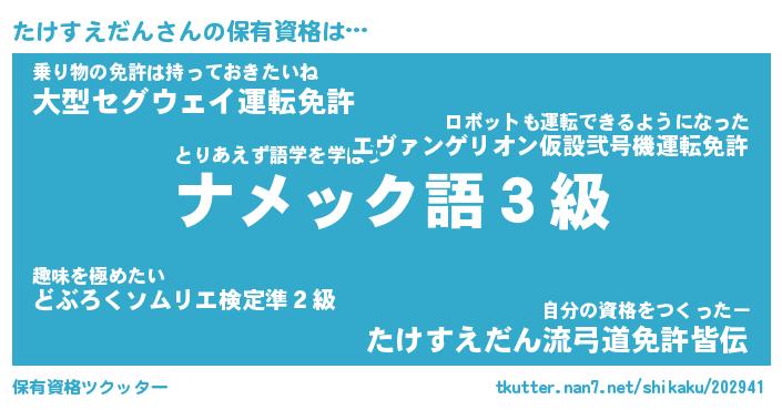 | 男性向けラノベタイトル風あだ名 | 『たけすえだんの憂鬱』 |
