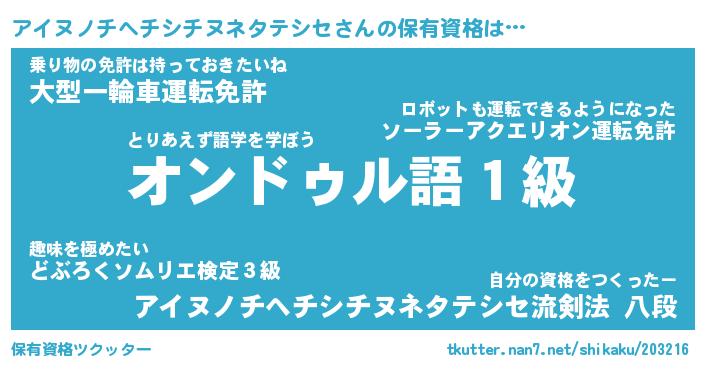 | ヒーロー風カッコイイあだ名 | 『スーパーアイヌノチヘチシチヌネタテシセ』 |