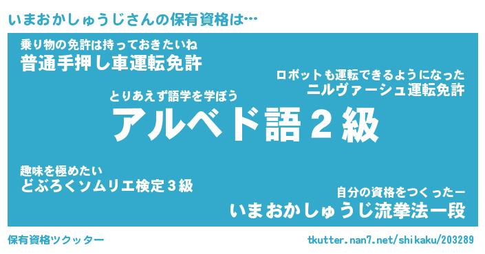 | ポケモン風あだ名 | 『イマチュウ』『イマオダネ』 |