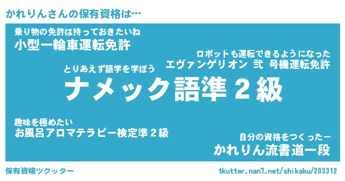 | 意味不明あだ名 | 『ペロリンかれりん』『永久保存かれりん』 |