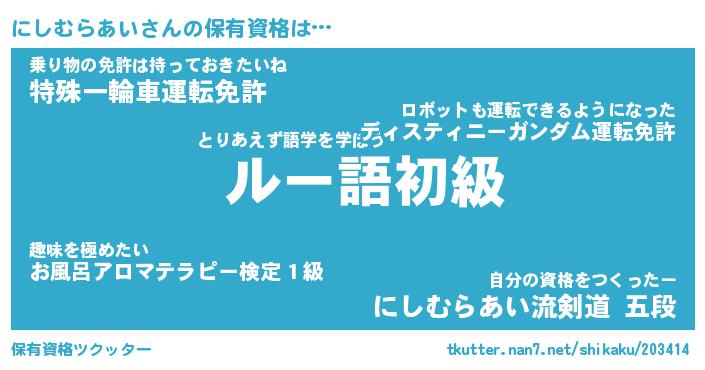| 男性向けラノベタイトル風あだ名 | 『ニシムラアイアートオンライン』 |