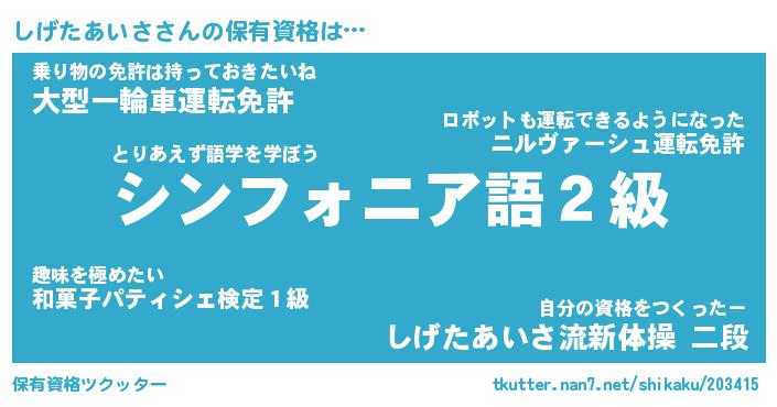 | ヒーロー風カッコイイあだ名 | 『スーパーシゲタアイサ』『魔戒騎士シゲ』 |