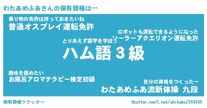 | 欧米人風あだ名 | 『マイケルわたあめふあ』 |