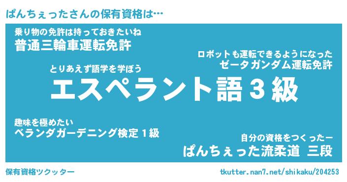 | 男性向けラノベタイトル風あだ名 | 『ぱんちぇったの憂鬱』 |