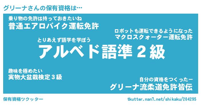 | 意味不明あだ名 | 『ペロリングリーナ』『永久保存グリーナ』 |