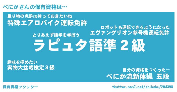 | ヒーロー風カッコイイあだ名 | 『スーパーベニカ』『ウルトラベにかマン』 |