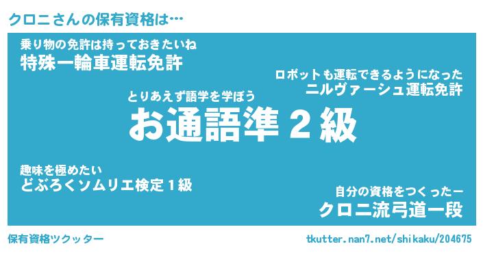 | 男性向けラノベタイトル風あだ名 | 『クロニの憂鬱』 |