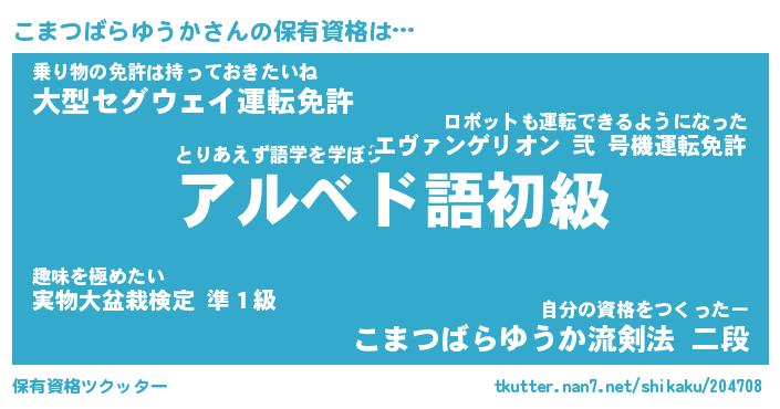 | 伝説のあだ名 | 『封印されしスナイパーこまつばらゆうか』 |