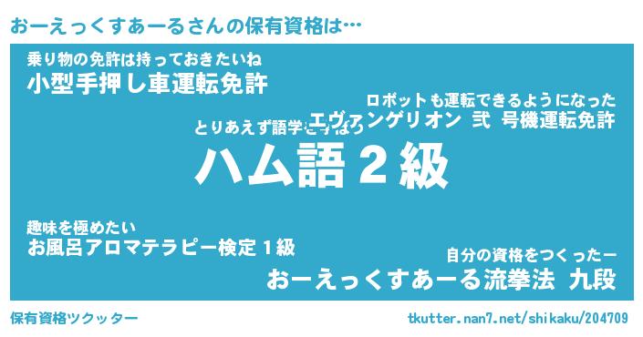 | ツイッター | おーえっくすあーるさんのツイッターID『katatsumuri_star』 |