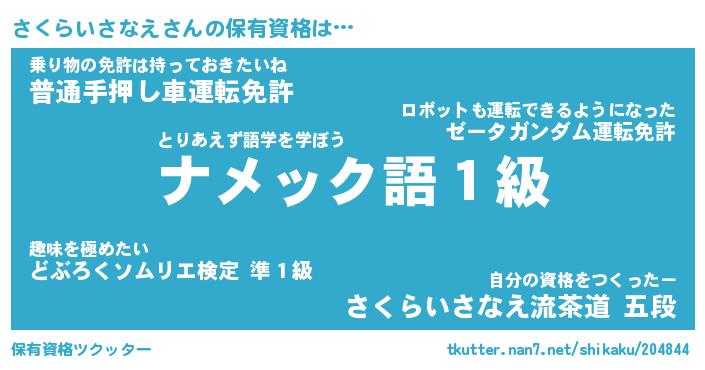 | 胡散臭い通販商品みたいなあだ名 | 『モテモテ間違いなしブレスレット…その名も「さくらいさなえ」』 |